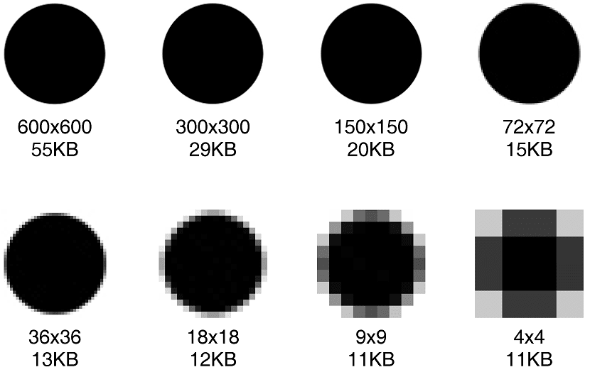 Intentaremos enfocar esta mejora de otra forma y para entender la importancia de los archivos de 64 bits, compararemos dibujos vectoriales representados con diferentes cantidades de datos (8 bits vs. 64 bits) y mapas de bits con distintas resoluciones (alta vs. baja). Veremos cómo afecta la cantidad de información, a la representación de su contenido. Esto revela diferencias significativas en calidad, precisión y aplicación.