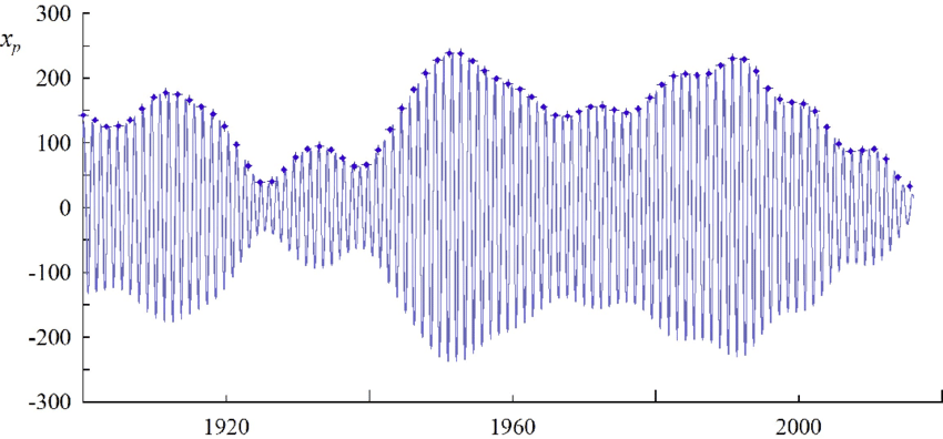 Imágenes sobre la oscilación Chandler, The Chandler wobble (continuous line) and its amplitude (discrete… | Download Scientific Diagram
