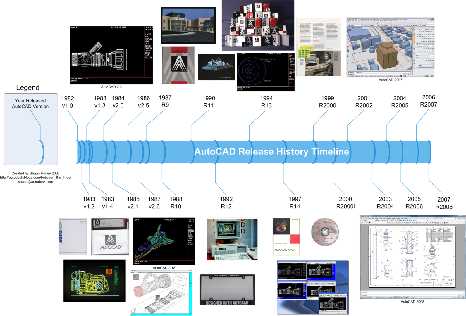 Este artículo nace del recuerdo de mis primeras experiencias con AutoCAD, a finales de los años 80, cuando estaba en el instituto. Más tarde, en la universidad y durante los cursos oficiales de Autodesk en los años 90, seguí profundizando en su uso. Era la época del famoso coprocesador matemático, el menú de teclado, las primeras tabletas digitalizadoras y los plotters de plumillas, con su ruido característico. Recuerdo el archivo del sistema solar en un ordenador primitivo, una de las primeras versiones de AutoCAD. No recordaba exactamente la versión y otros detalles, pero gracias a Shaan Hurley, me puse al día y obtuve más información sobre esas versiones históricas.