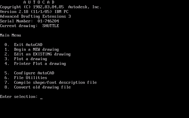 AutoCAD 2.18 (11-1-85) for IBM PC