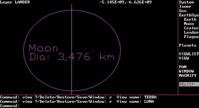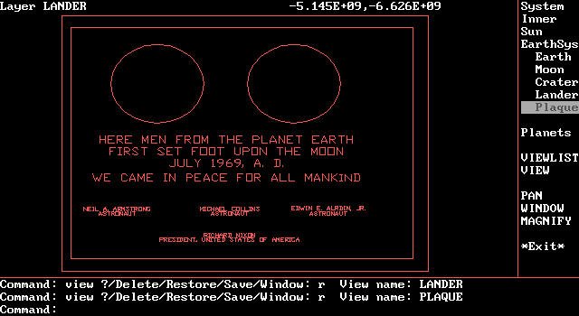 A principios de la década de 1980, hace casi 40 años, Autodesk decidió crear un archivo para demostrar la extraordinaria precisión de AutoCAD. Este archivo, denominado Solar.dwg, se incluyó en la versión 2.18 de AutoCAD y representaba el sistema solar a escala 1:1. En el Incluso podemos ver el Módulo Lunar Apollo 11, representado en la superficie de la luna.